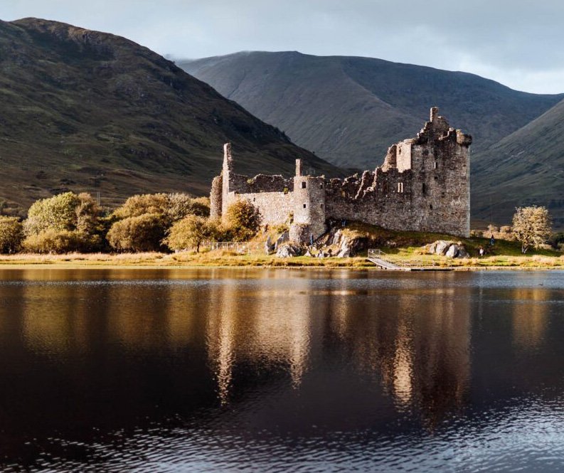 En la orilla noreste del Loch Awe, se alzan las ruinas de Kilchurn Castle, uno de los castillos más fotografiados de Escocia, construido originariamente sobre una isla por el Clan Campbell, con el tiempo y los cambios en el nivel del agua y la construcción de un istmo lo conectaron a tierra firme (aunque sigue siendo accesible solo cuando el lago está bajo).